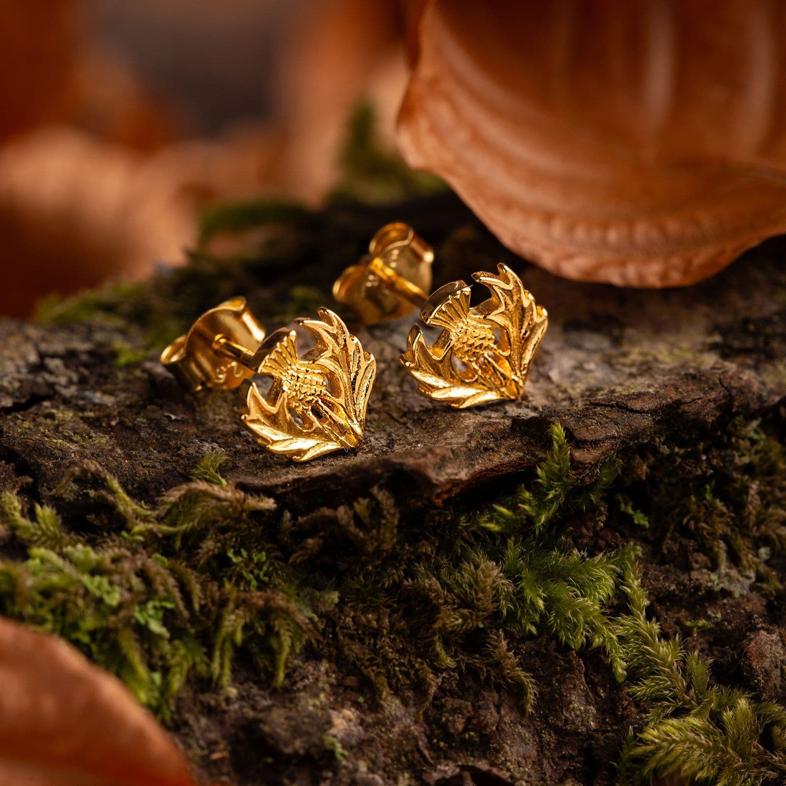 Scottish Thistle Small Stud Earrings Gold Finish 0383G