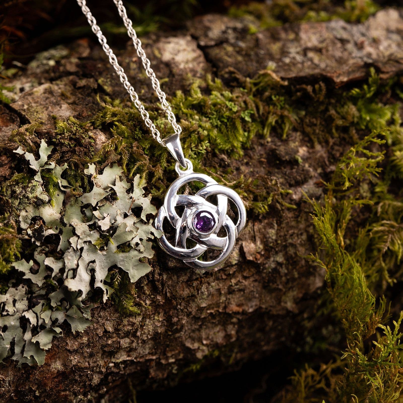 Sterling Silver Celtic Round Knot Pendant with Amethyst 2616