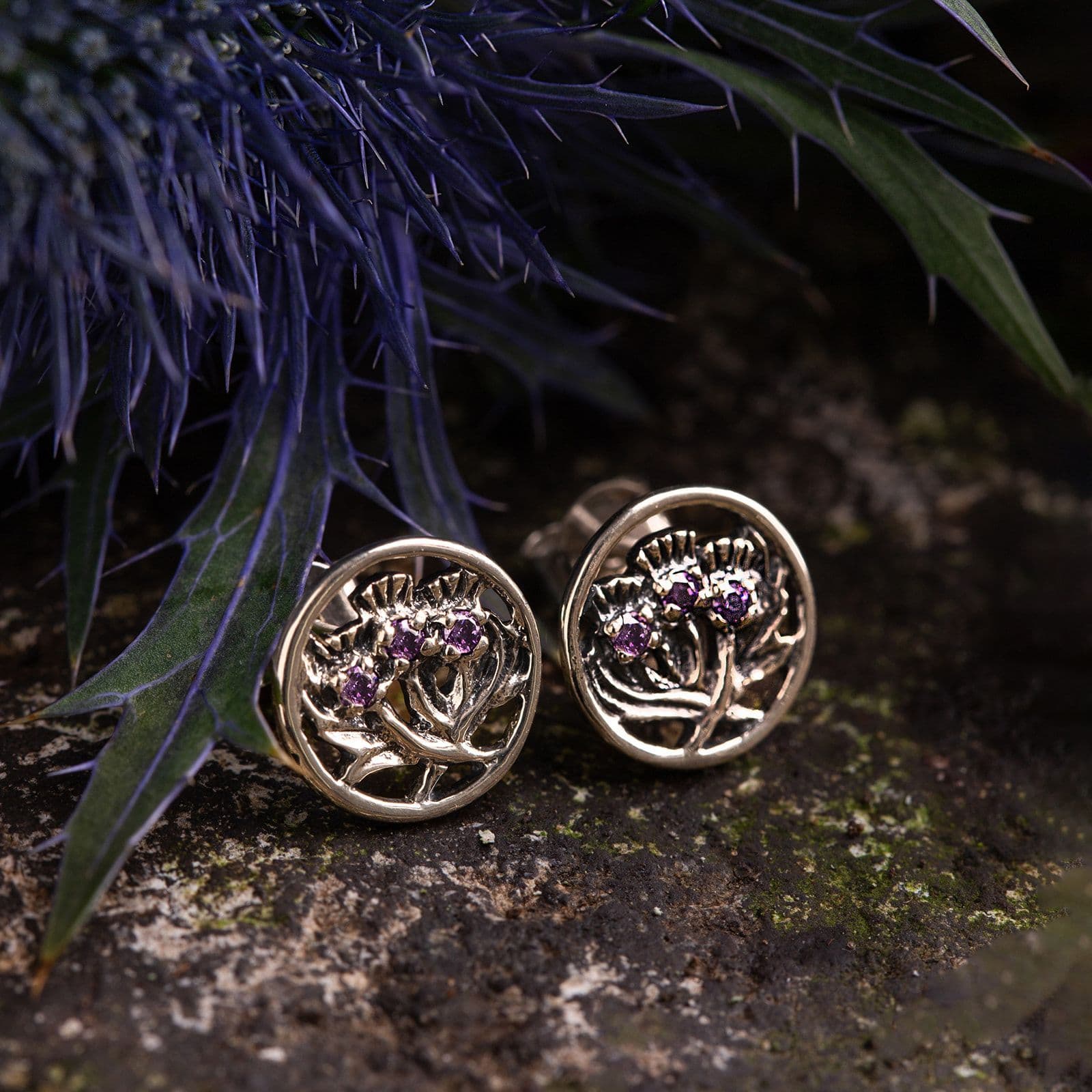 Sterling Silver Thistle Stud Earrings with Amethyst 2605